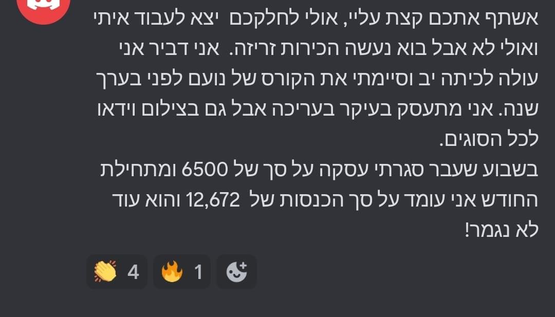 בסרטון תוכלו לראות את אחד התלמידים שלי שמדבר בדיוק על זה. ממליץ להקשיב.